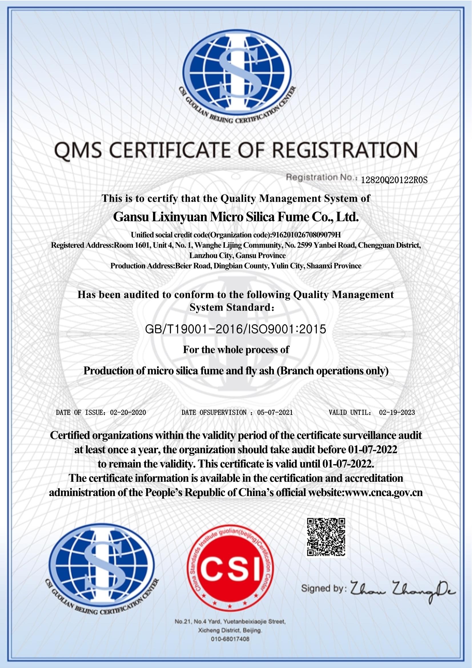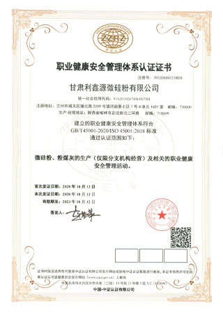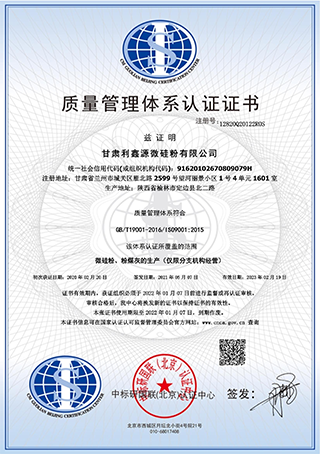 甘肅利鑫源微硅粉有限公司是專業(yè)微硅粉生產(chǎn)加工廠家,從事研發(fā)高品質(zhì)微硅粉,以出口為主的科技型企業(yè)。自2004年以來,公司專做微硅粉十七年。擁有先進的生產(chǎn)和化驗設(shè)備,并通 過了ISO9001:2015質(zhì)量管理體系認(rèn)證、ISO145001:2018環(huán)境管理體系認(rèn)證和ISO 45001: 2018職業(yè)健康管理體系認(rèn)證。